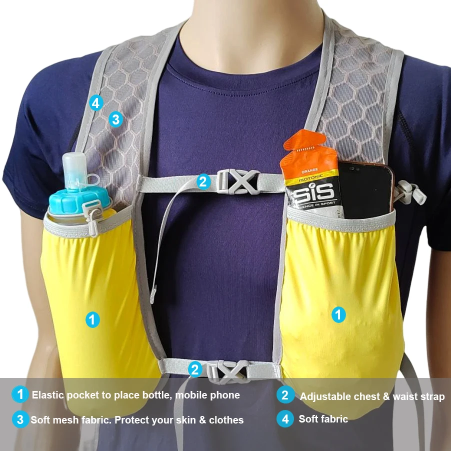 【Use range】This backpack is mainly designed for trail running and road running. It's also suitable for biking, hiking, triathlon, etc.